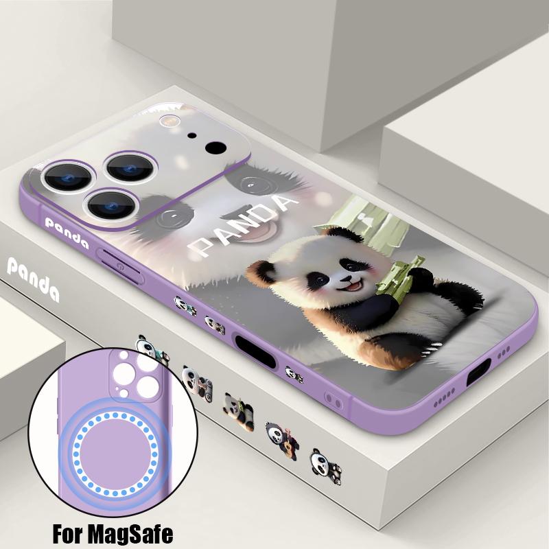 For iPhone 17 Pro Max Case Lovely Baby Panda Pattern Magnetic For Magsafe Silicone Cover For iPhone 16 Pro Max Funda iPhone 15 14 13 12 11 16E Air