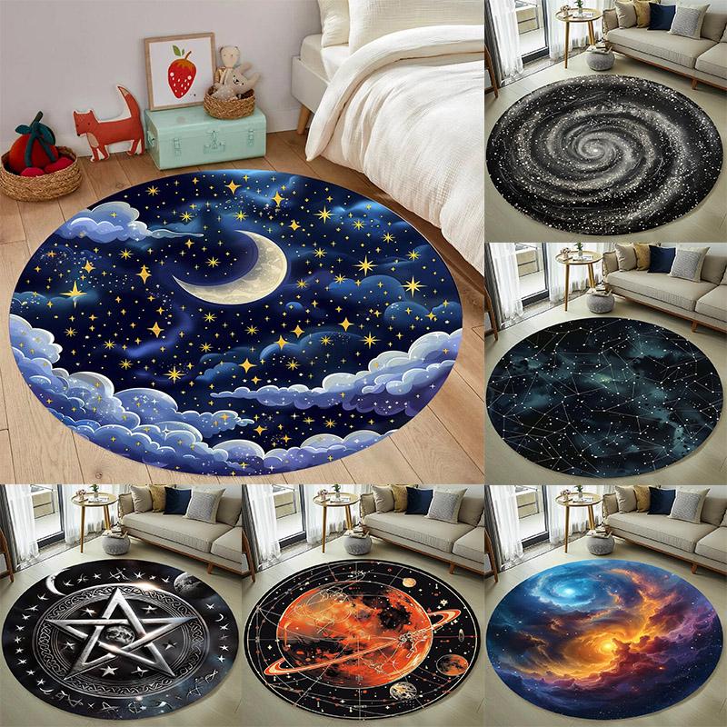 Crescent Stars Moon Rug Round Carpet Non-Slip Floor Mat for Living Room Bedroom Circle Rugs Machine Washable Round Carpet Decor