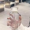 300-750ml Double Lid Water Bottle High Borosilicate Glass Water Cup with Straw Korean Portable Milk Juice Cup with Time Marker