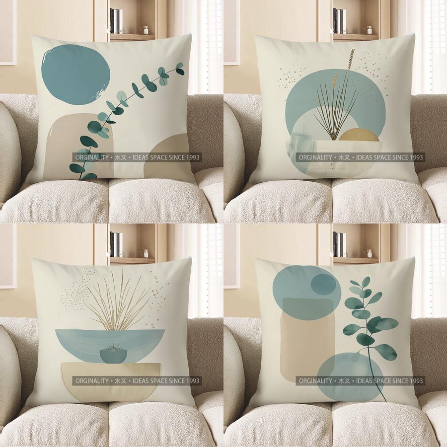 Home Decor Modern Geometric & Eucalyptus Patterned Pillow Pattern Cushion Cover Suitable For Sofa Bedroom Car Pillow Cover
