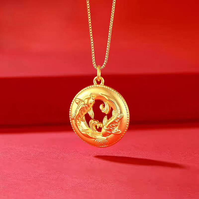 Vietnam Gold Koi Fish Pendant: Unisex Chinese-Style Peace Buckle Necklace