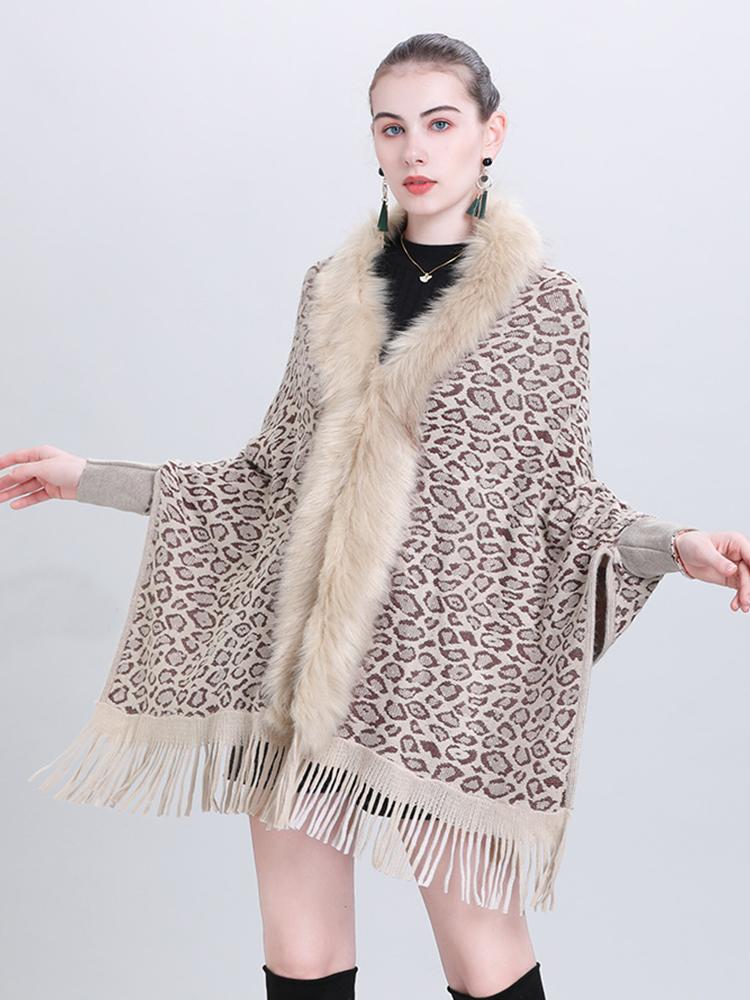 New Faux Fur Collar Imitation Cashmere Women Scarf Winter Vintage Leopard Poncho Warm Thick Wrap Capa Para Mujer Pashmina Shawl