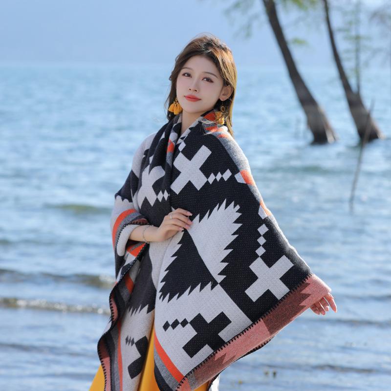 New Knitted Elegant Women Scarf Winter Vintage Poncho Female Thick Wrap Blanket Capas Para Mujer Chales Pashmina Shawl Boho