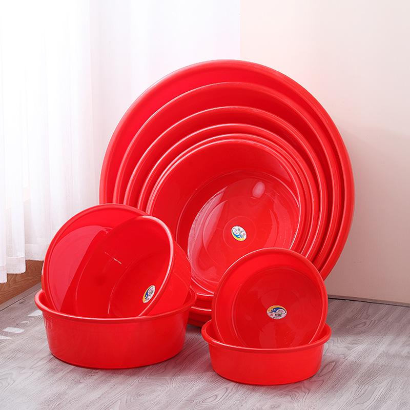Extra Thick Red Plastic Washbasin - Large Round Household Basin