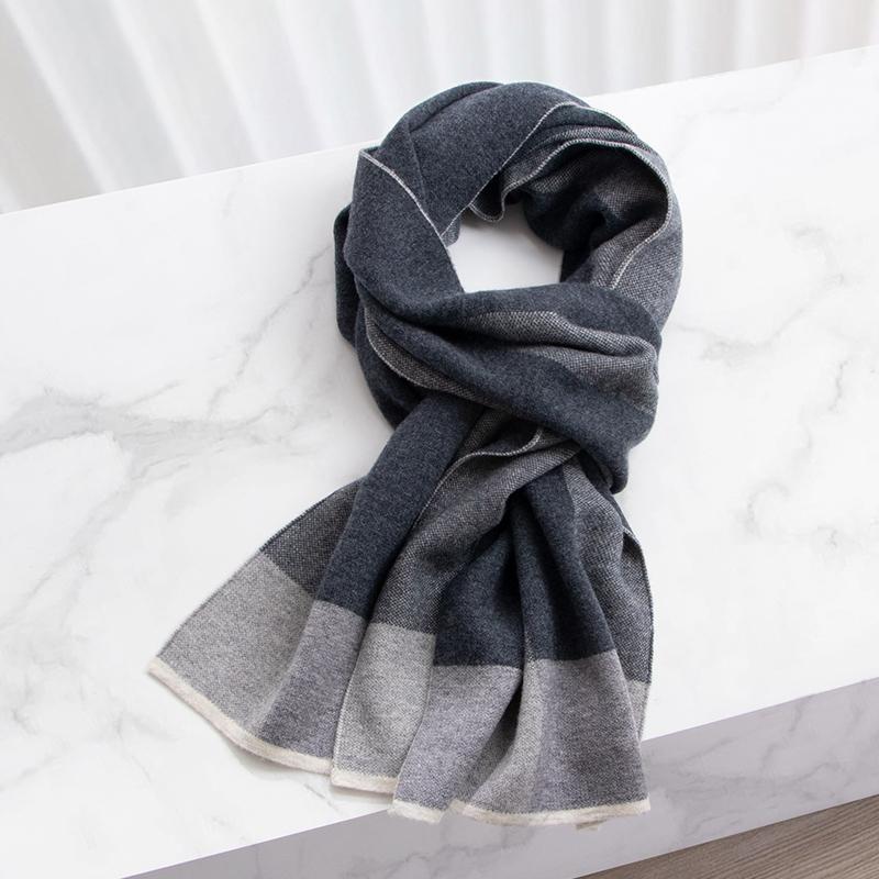 100% Wool Scarf Men Winter Warm Neck Scarves Classic Business Designer Scarf Shawls Luxury Striped Plaid Blue Foulard Hommes