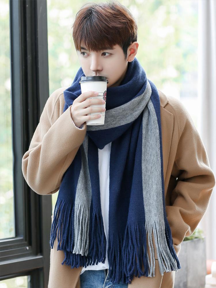 New Fashion Men'S Winter Korean Version Of The Wild Simple New Men'S Scarf Knitted Long Section Young People Students Scarf