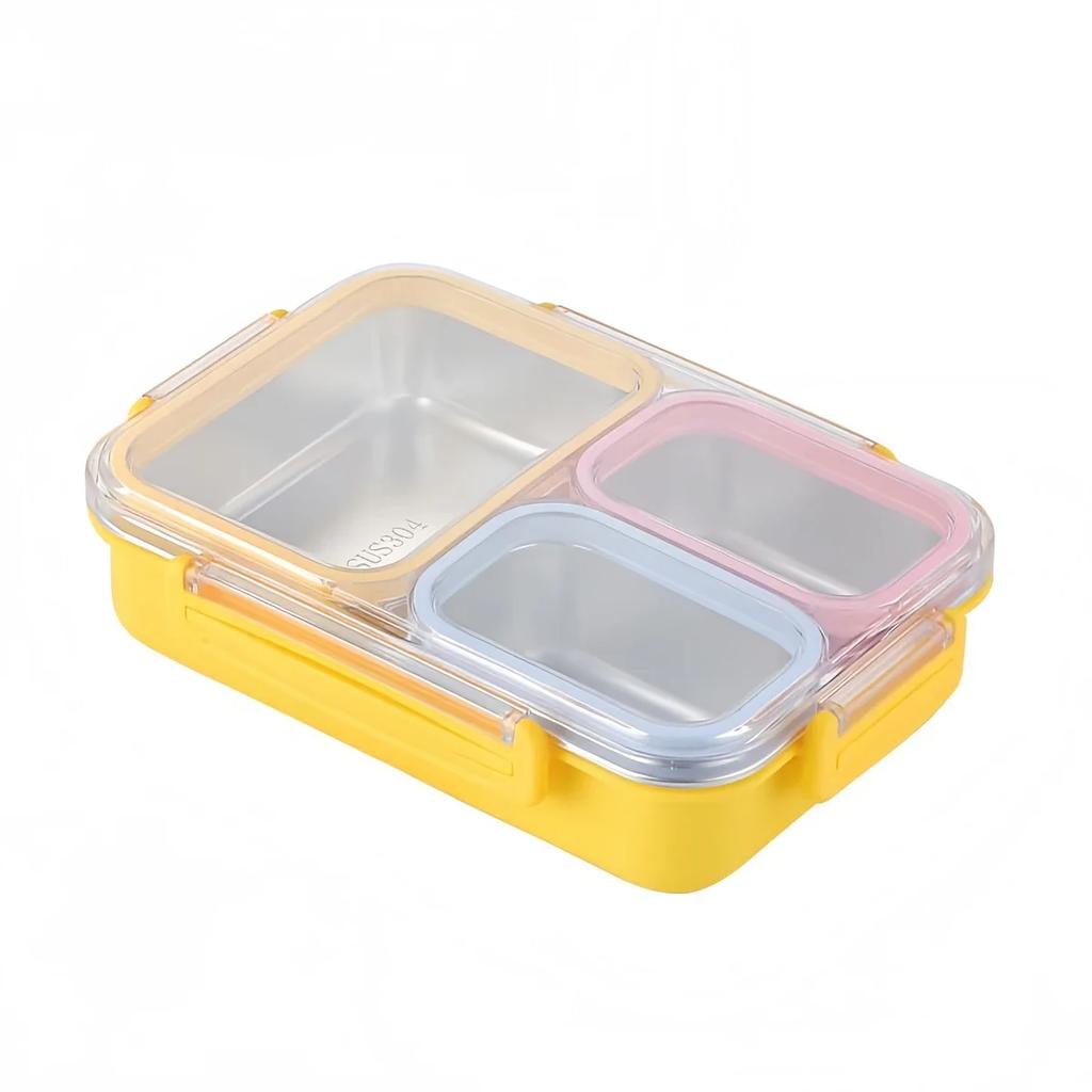 Stainless Steel Lunch Box Kitchen Snack Food Container Lunch Box 24.5x17.5x6cm Three Compartments With Silicone Seals Lids