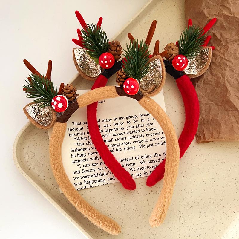 Christmas Headband Reindeer Antlers Horn Flower Hair Band Clasp Headwear for Kids Adult New Year Navidad Party Halloween Cosplay