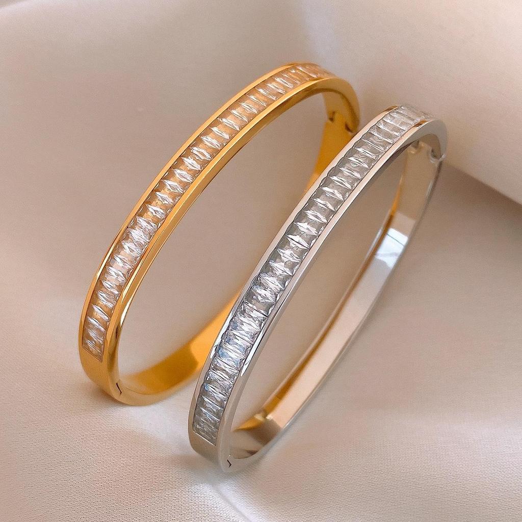 Stainless Steel Geometric Zircon Buckle Bangle - Elegantly Stylish Bracelet for Women