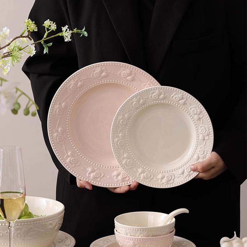 French Relief Cream Wind Ceramic Dish Household 8 Inch Underglazed Colour Exquisite Kitchen Tableware Beautiful Food Plates