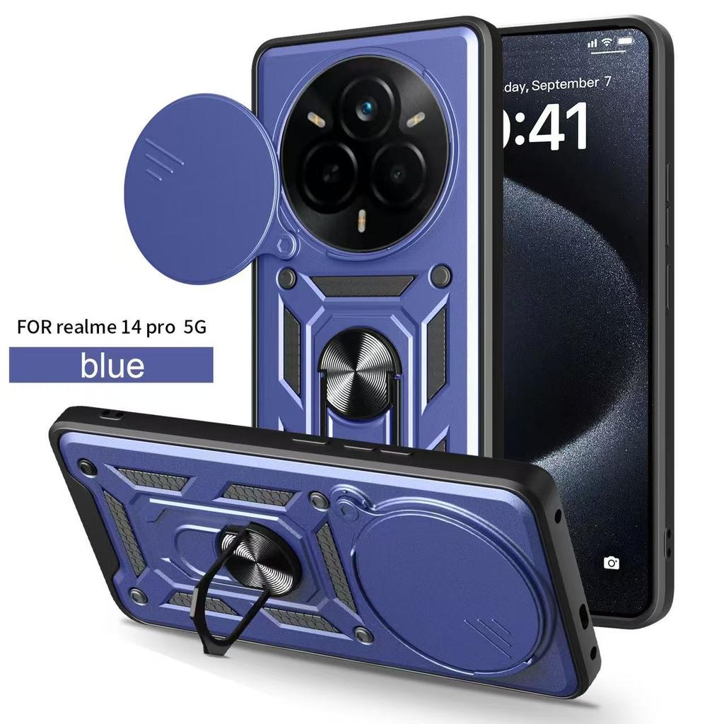 Case for Redmi Note 14 Pro Plus Ring Holder Stand Car Magnetic Armor Shockproof for Redmi 14C 14R Sliding Lens Protective Cover
