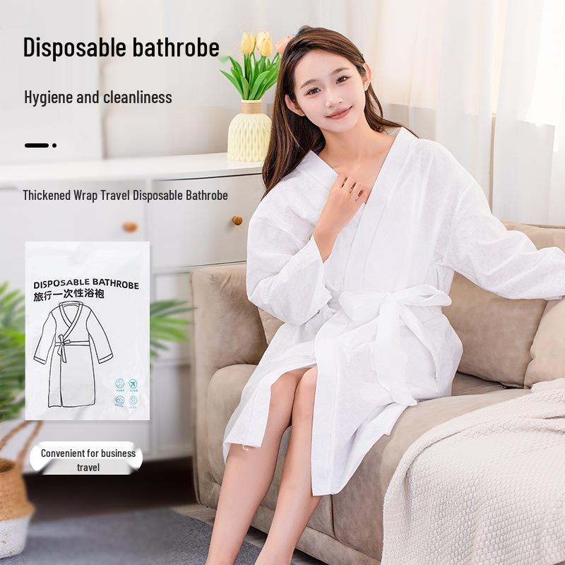 Disposable Travel Set: Bathrobe, Towel, and Dry Hair Cap - Lint-Free, Water-Absorbent, Quick-Drying.