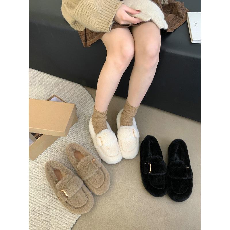 Internet Celebrities Pedal Fluffy Shoes Piled Warm Mink Wool Cotton Shoes Doudou Single Shoes