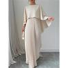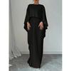 Spring Summer Elegant Crew Neck Pleated Dresses Women Casual Solid Loose Long Dress Cloak Sleeves Ruffle Maxi Dress Vestidos