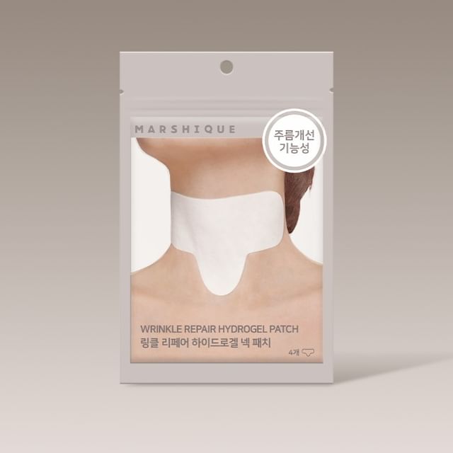 A wrinkle repair hydrogel neck patch contains Wrappinglagen™ that helps provide moisturization to the skin and improve skin elasticity.