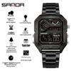 SANDA Men's Luxury Quartz Watch - Steel Band, Waterproof, Three-Time Zone, Versatile for Casual and Workplace Wear.