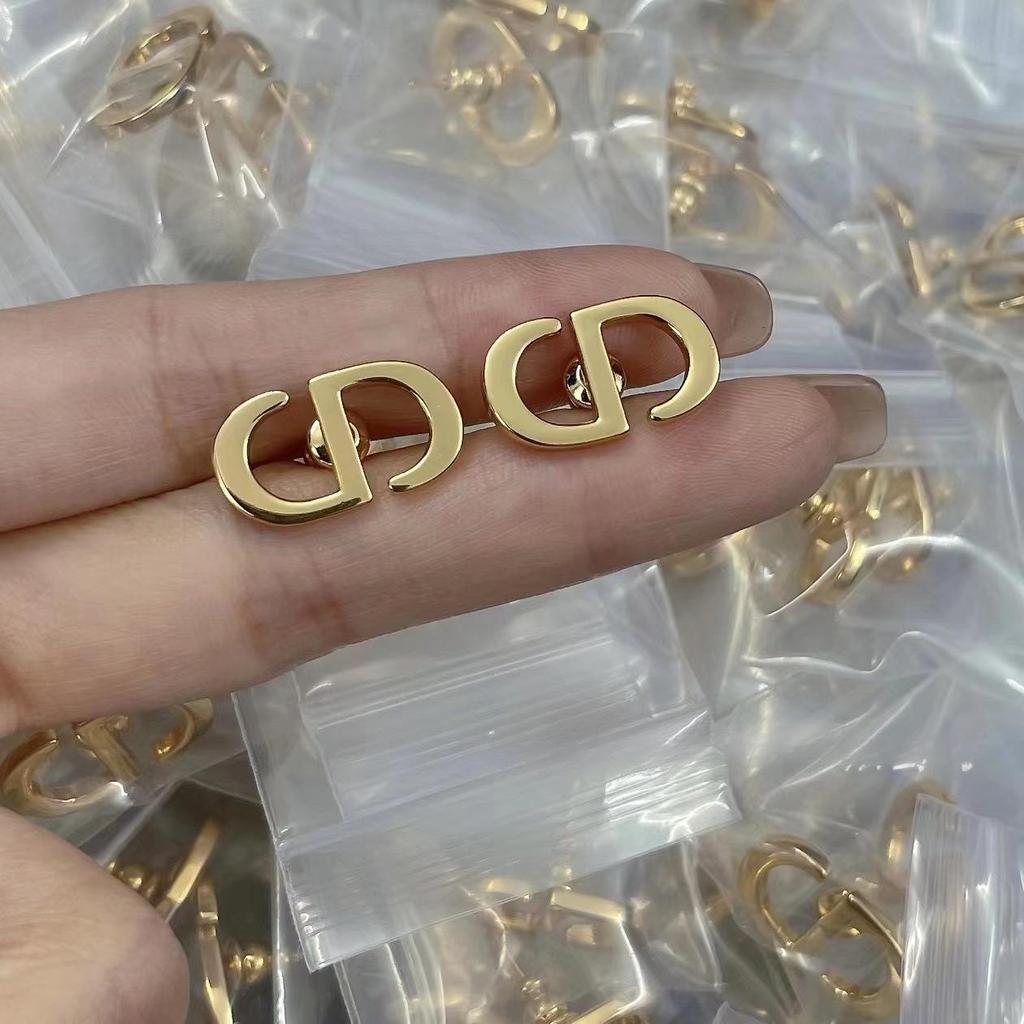 Real Shot D's D Brand Replica Pig Nose Stud Earrings with Tag Letter CD - Women's Simple Smooth Design