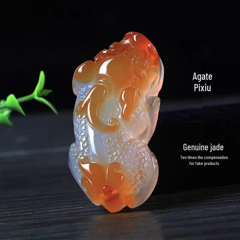 Golden Cicada Pi Xiu Pendant with Natural Ice Agate Chalcedony, Jade Stone, and Clever Colors - Buddha Guanyin Landscape Plaque Design.