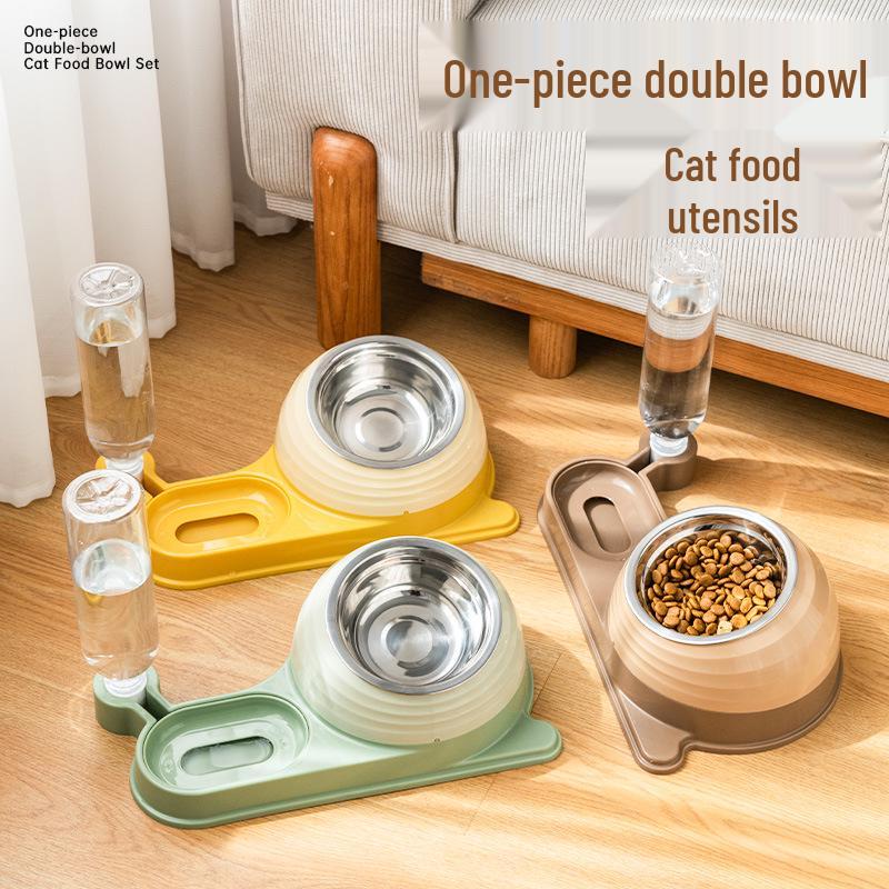 Multi-Function Pet Bowl: Dog Feeding & Drinking, Cat Slow Feeder, Slanted Design, Neck Protection, Non-Slip, Stainless Steel.