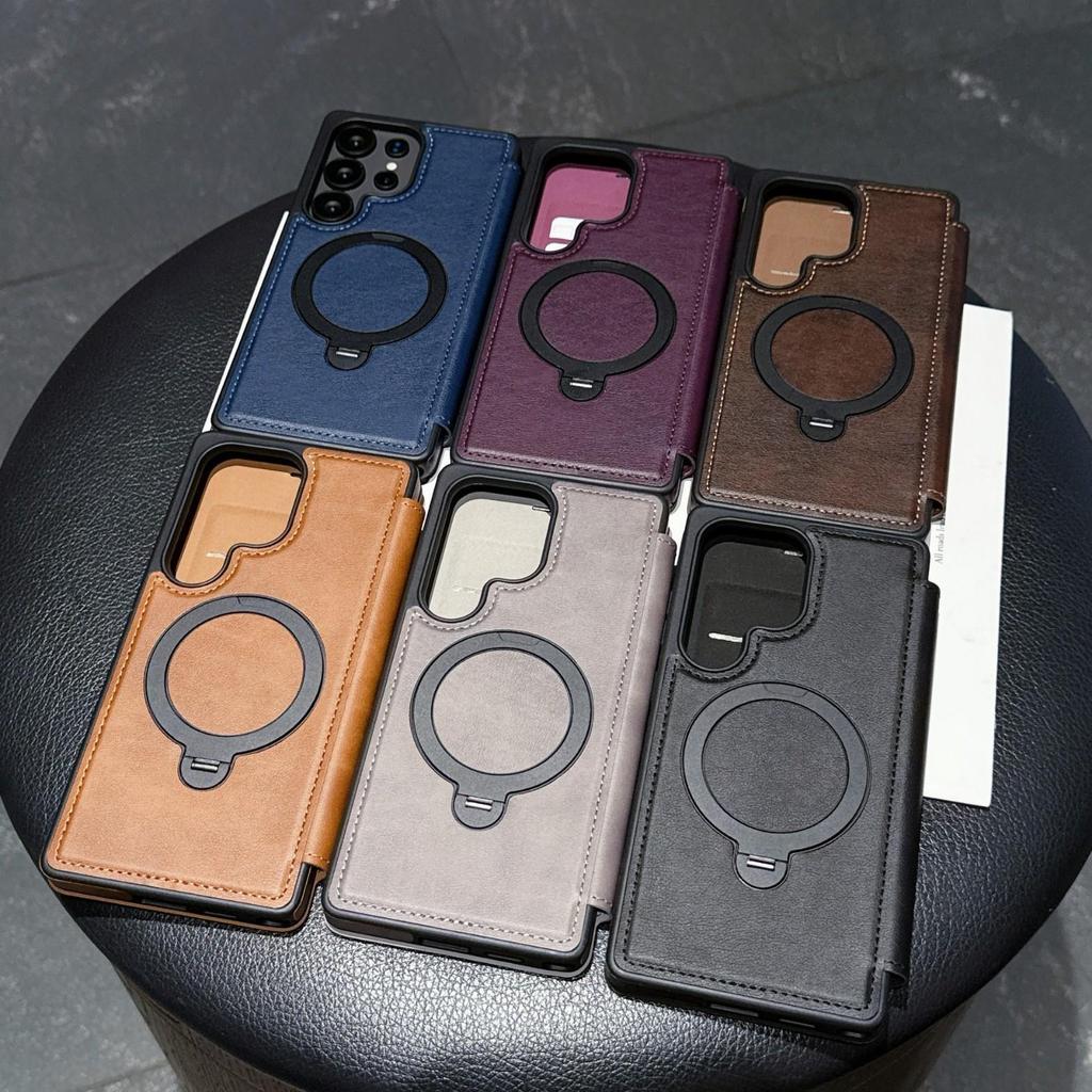 Samsung S25 Ultra Flip Card Holder Phone Case with Armor Shield and Rotating Magnetic Stand - Full Coverage Anti-Drop A17 Case