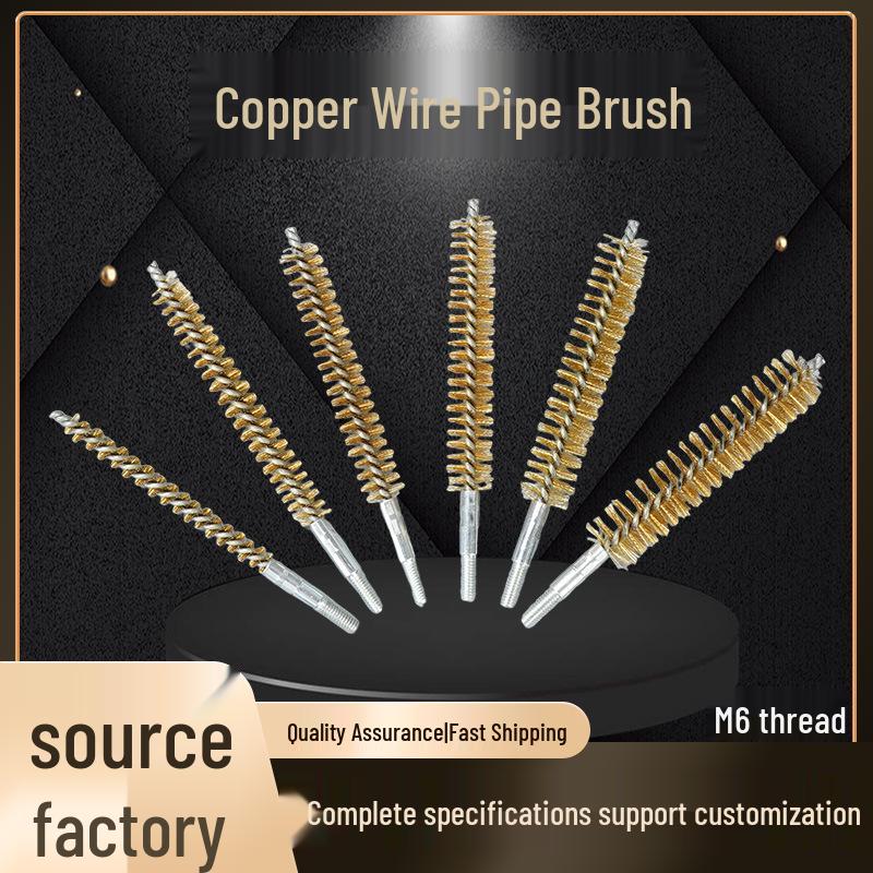 Copper Wire Pipe Brush for Polishing, Deburring & Rust Removal with M6 Teeth Screw