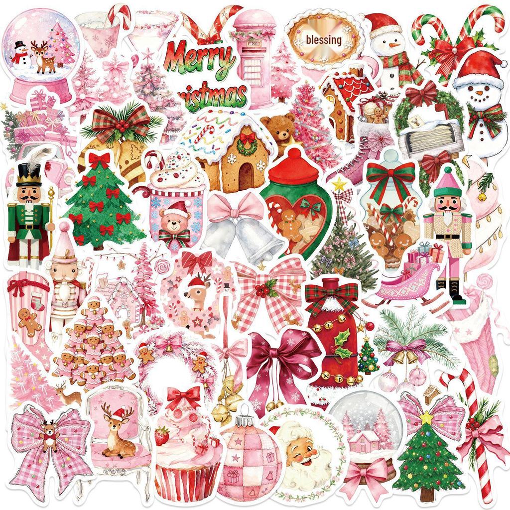 50 Waterproof Pink Christmas Stickers: English Graffiti for Scrapbooks, Phones & Decoration