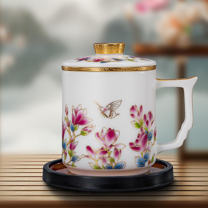 Golden Jade Ceramic Tea Cup with Lid & Filter - Large Capacity Office & Gift Cup