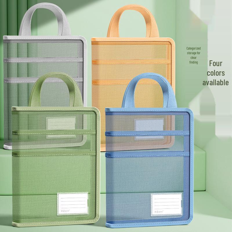 L-Shaped A4 Exam Paper Storage Bag with Zipper, Mesh Pockets, & Large Opening for Middle School Students