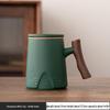 Ceramic Tea Cup with Water Separation, Large Capacity, All-Ceramic Filter, Walnut Wood Handle, Customizable Logo.