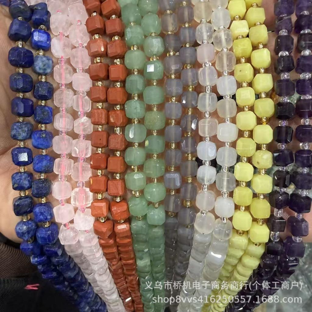 7mm Cube Natural Stone Beads: Tiger Eye, Amethyst, Red Agate for DIY Jewelry