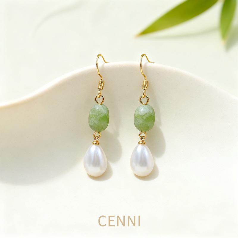 Jade Hanfu Pearl Earrings - Retro Autumn/Winter High-End Light Luxury Dangles with Unique Design