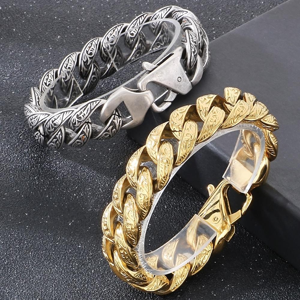 Cool 18MM Width Curb Cuban Link Chain Bracelet for Man Solid Stainless Steel Men's Bracelets Vintage Jewelry Accessories 5 Color