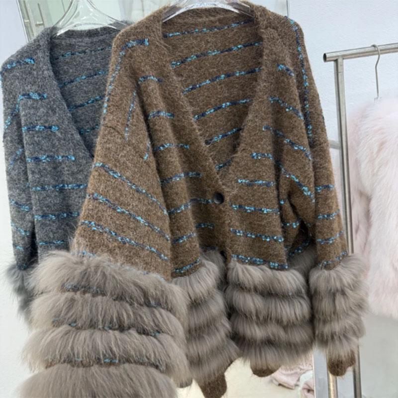Sweaters Coat Cardigan for Women Winter V-Neck Mid-Length Knit Cardigan Loose Long Sleeve Faux Mink Coat