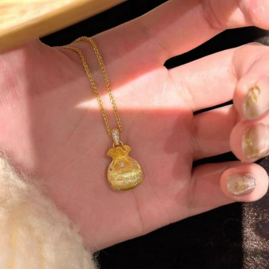 2026 Women's Gold-Tone Faux Diamond Lucky Bag Pendant Necklace - Stylish Chinese Clavicle Chain