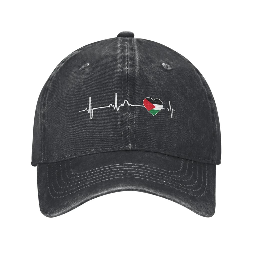Heart Beat Palestinian Flag Baseball Caps Casual Distressed Washed Headwear Unisex Outdoor Travel Soft Caps Hat