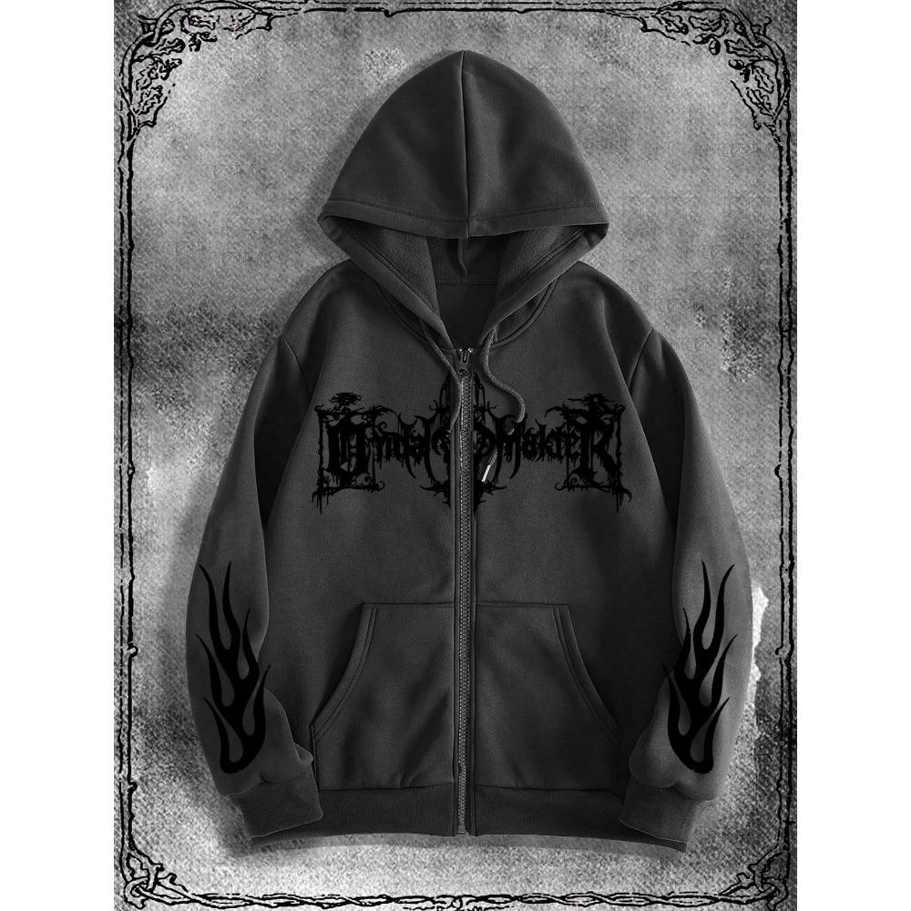 Y2K Gothic Dark Style Printed Zip-Up Hoodie, a Fashionable Streetwear Choice for Casual Occasions, Perfect To Pair with Trendy Outfits