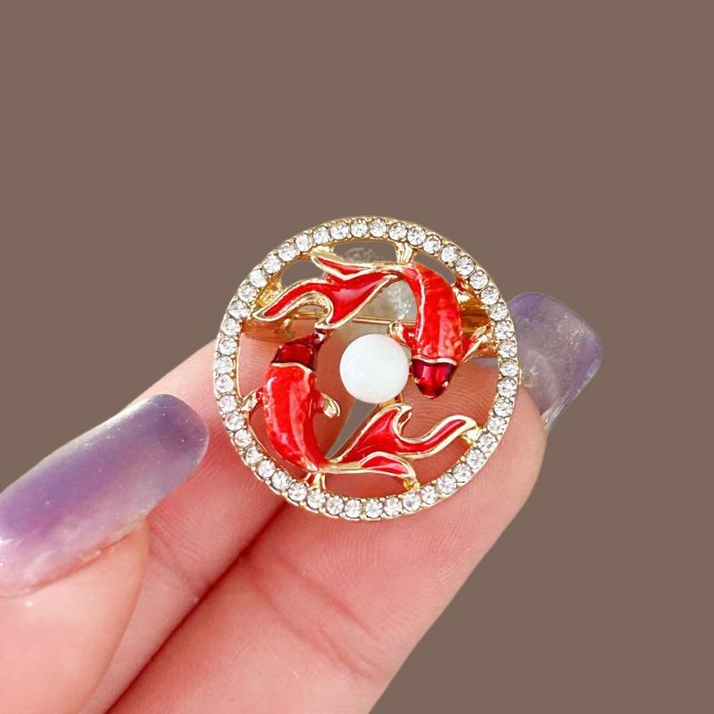 Double Carp Playing with Pearls Women's High-Class Fashion Accessories - Belts with Waist Closure - Premium Brooches and Pins