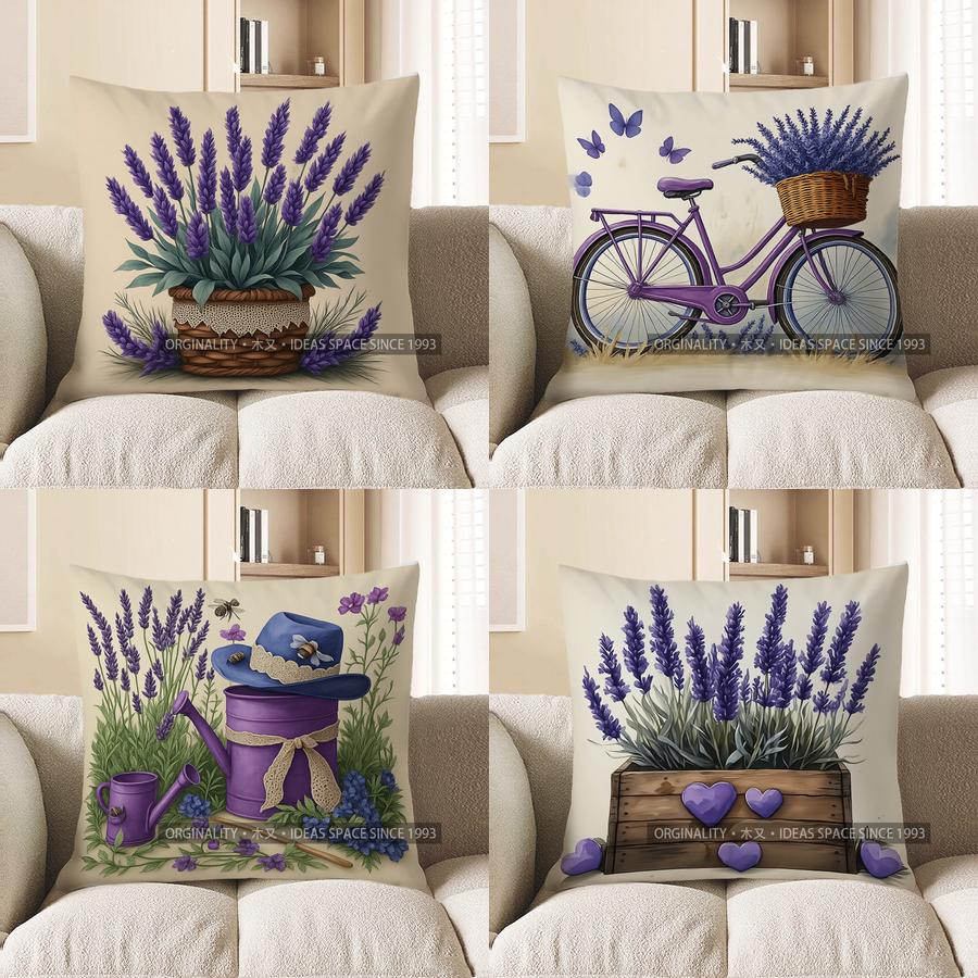 Home Decor Lavender In Basket Decorative Pillow Cover Pattern Cushion Cover Suitable For Sofa Bedroom Car Pillow Cover