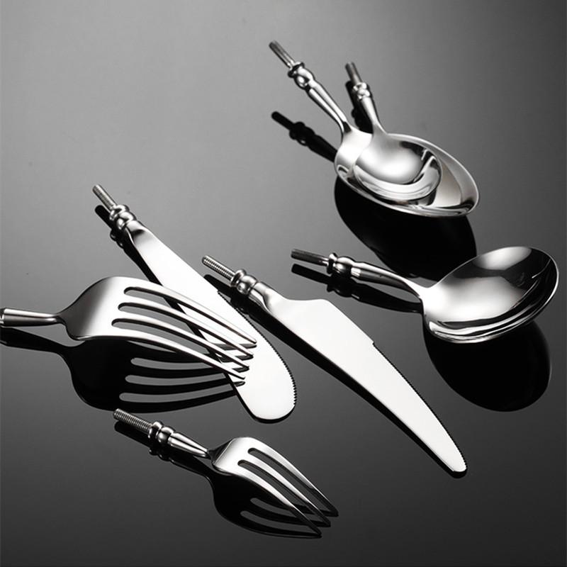 304 Stainless Steel Western Cutlery Set – Knife, Fork, Spoon, Handle with Round Bead Spoon Head.