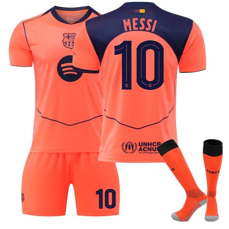 Teens Kids Adults Custome Name Football Kits 25/26 Barça 2nd Away #10 Messi Sport Training Jersey Set with Socks