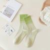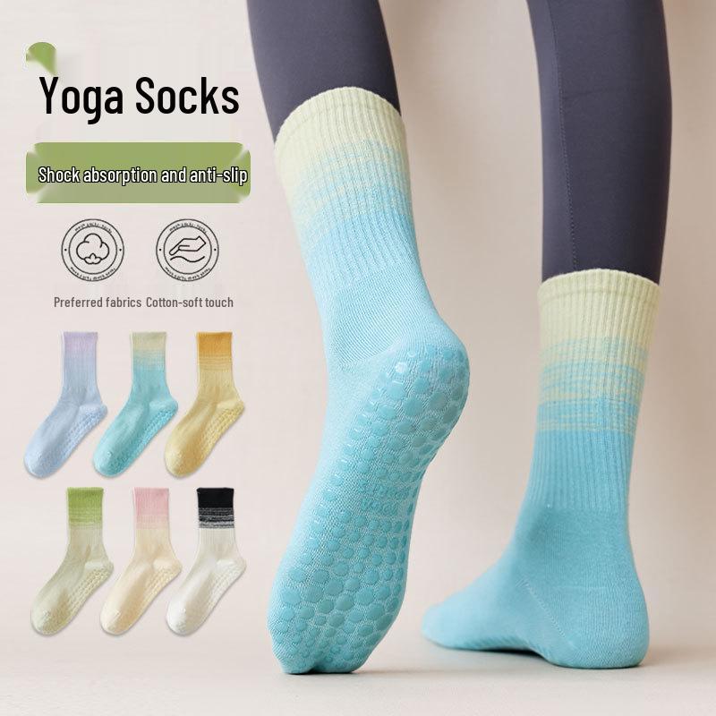 Women's Gradient Yoga Socks: Sweat-Absorbent Mid-Calf, Non-Slip Silicone, Versatile for Pilates and Fitness, Cotton Blend
