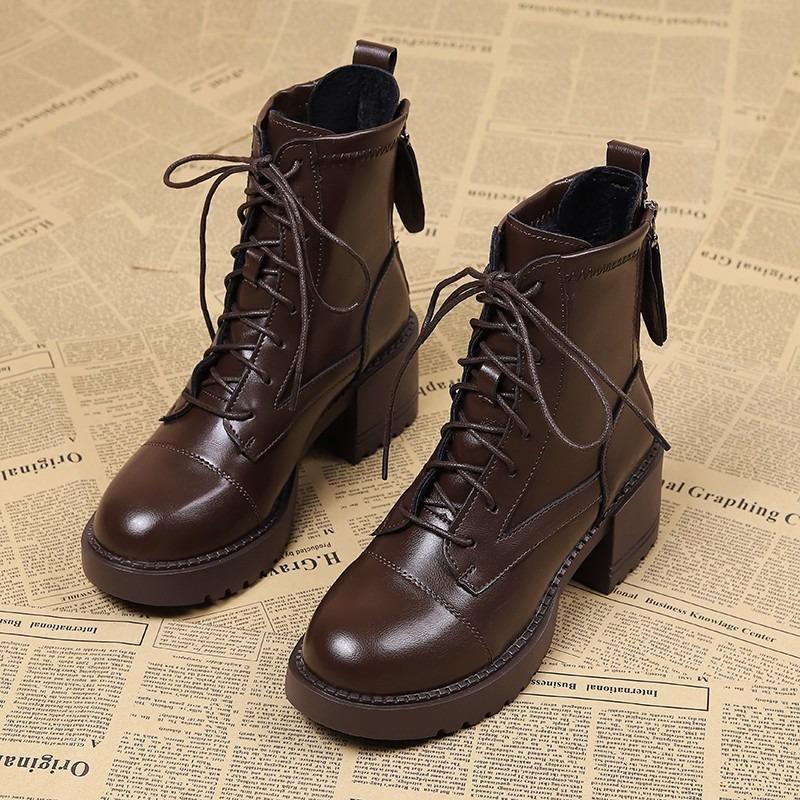 Martin Boots Autumn and Winter New Rear Zipper Platform Fashion Short Boots Show Small Thin Boots Leather Shoes