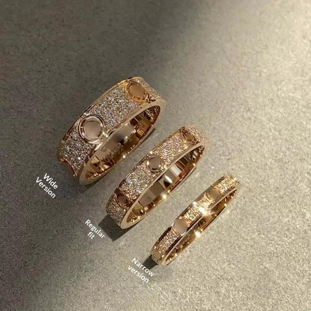 V Gold High Version Gypsy Star 3-row Diamond Ring Narrow Wide Version Women's Plated 18k Rose Gold Couple Ring
