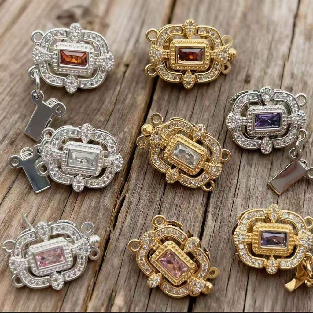 18k Gold-Plated Silver and Zircon Double-Row Necklace Bracelet with Rectangle Clasp
