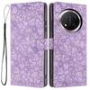 Flip Case For Honor X9c 5G/Magic7 Lite 5G Leather Phone Cover Cherry Blossom Pattern Wallet Stand with Wrist Strap