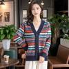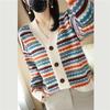 Striped Cashmere Cardigan Women's V-neck Casual Thick New Spring New Retro Jacquard Wool Sweater Knitted JSweater Jacket
