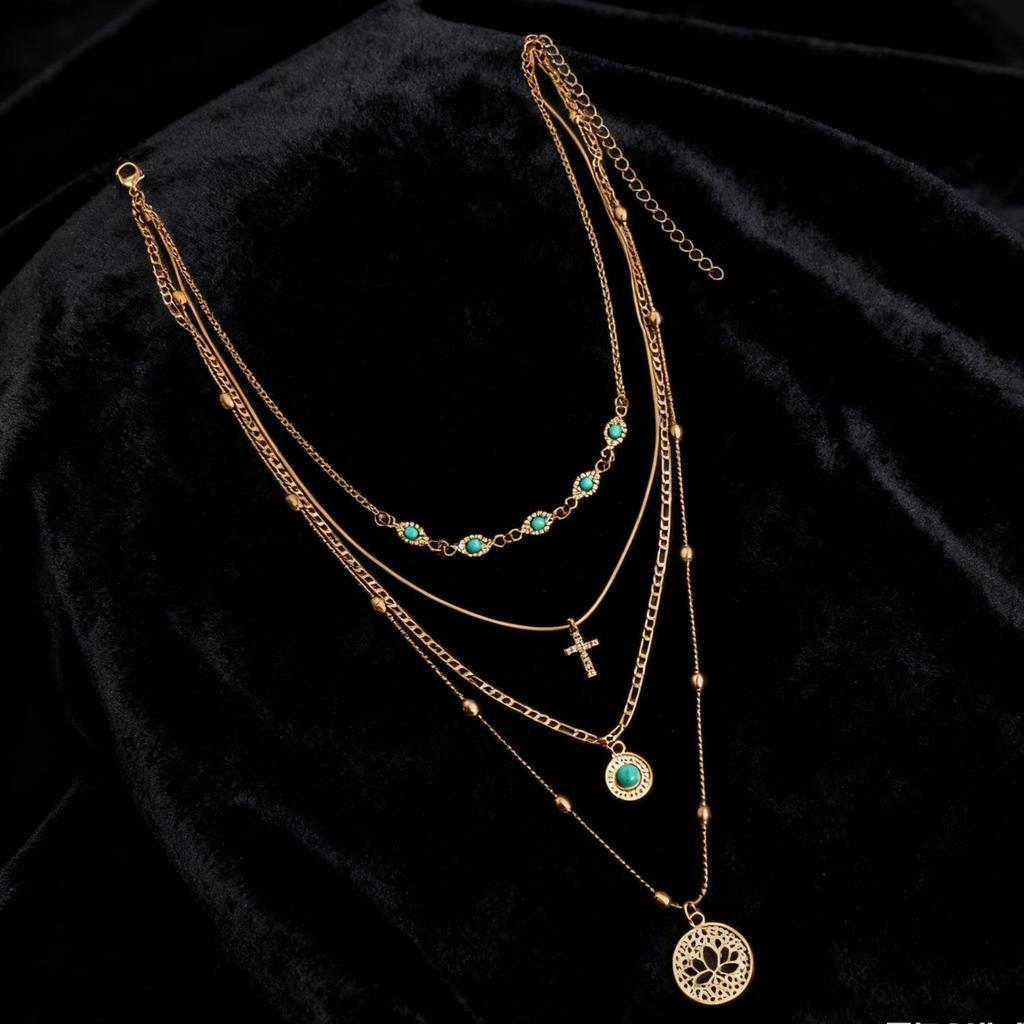 American Style Multi-layer Rhinestone Cross Pendant Necklace