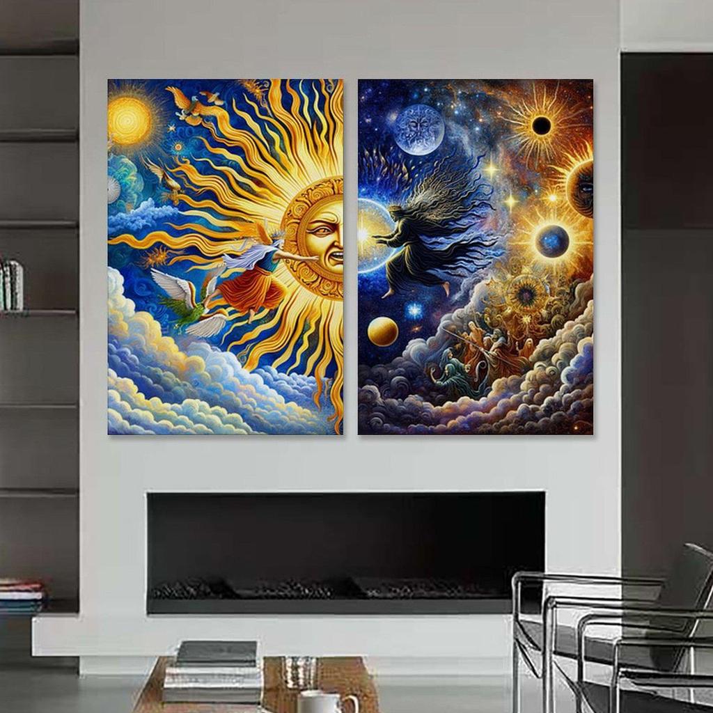 Abstract Sun Moon Yin Yang Starry Sky Frameless Two-Panel Canvas Art