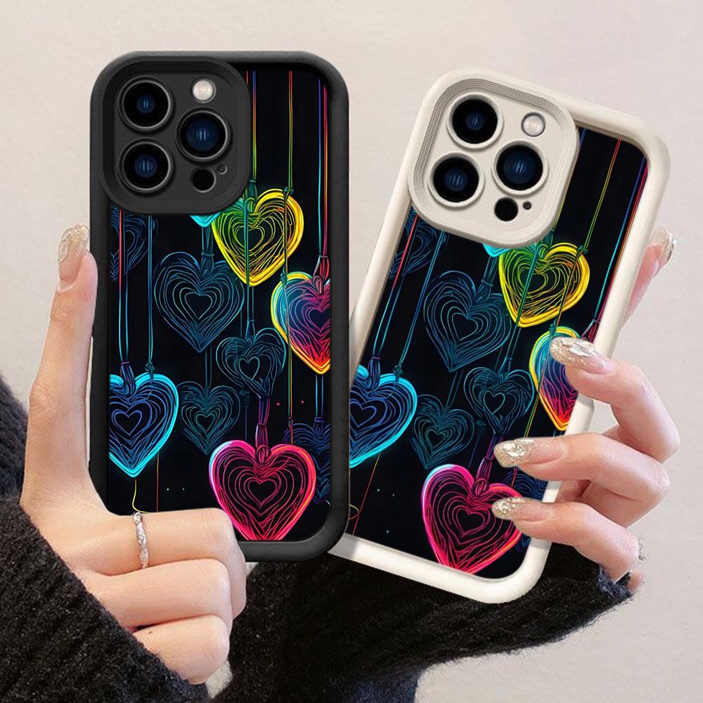 JT185 Colorful Neon Love Hearts for iPhone 17 16 15 14 Pro Max Samsung S26 S25 Ultra A17 A16 A07 A56 A25Xiaomi 15T Redmi 15c 14C Note 13 Soft TPU Case