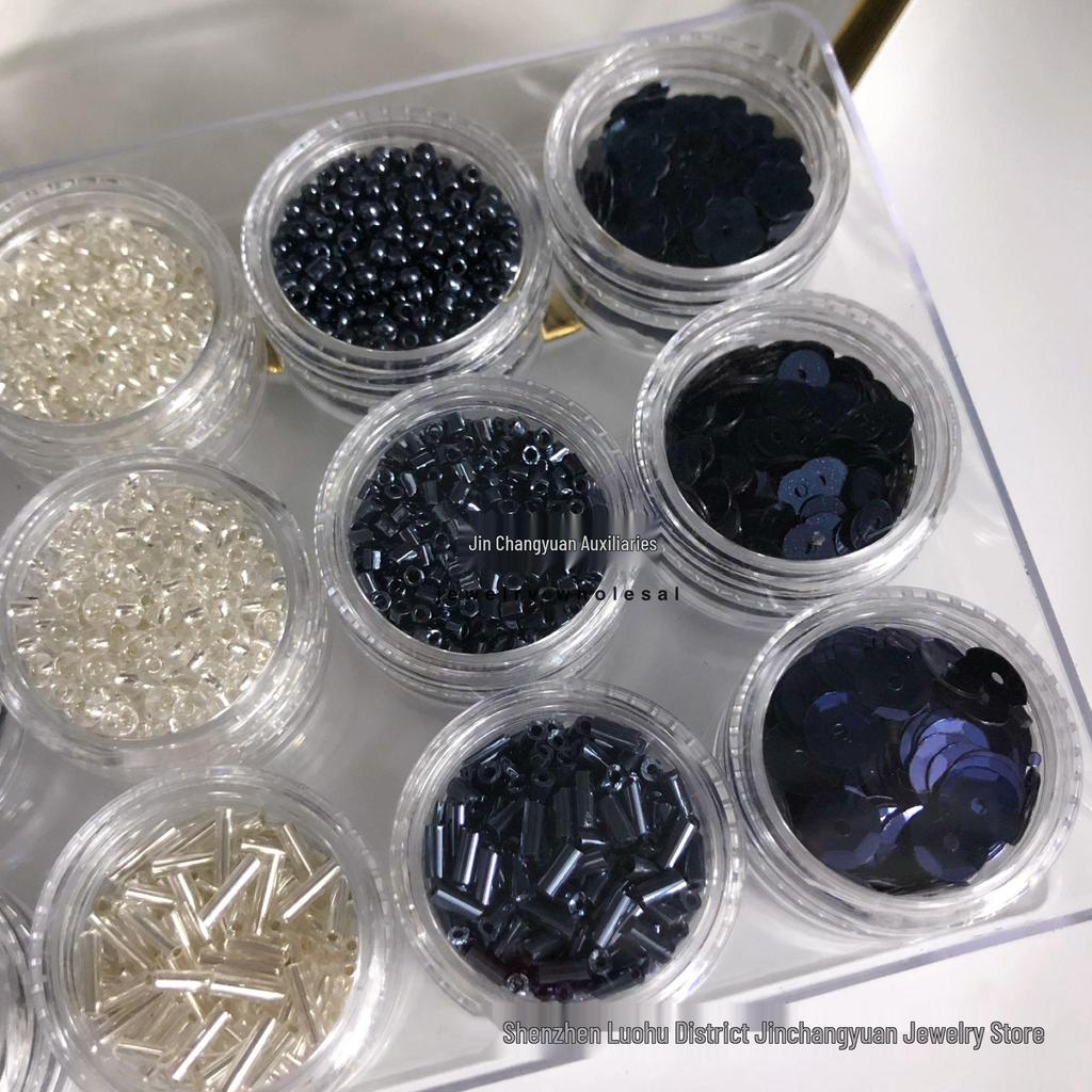 Deep Blue Series: 12-Color Seed Bead & Sequin Set for DIY Clothing Accessories
